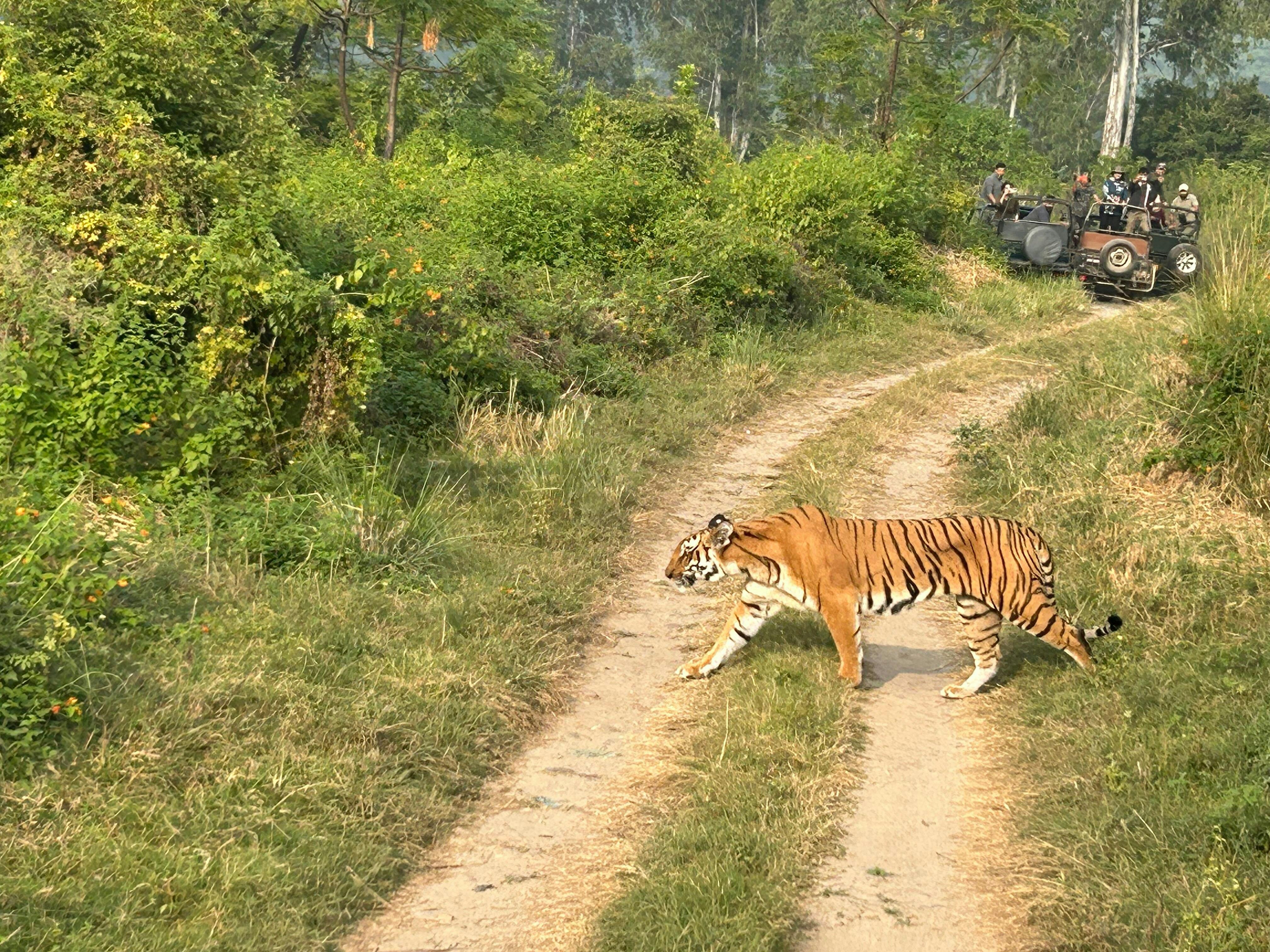 We also happened to spot a tigress in Corbett while my son was wearing the tiger hoodie. 🐅